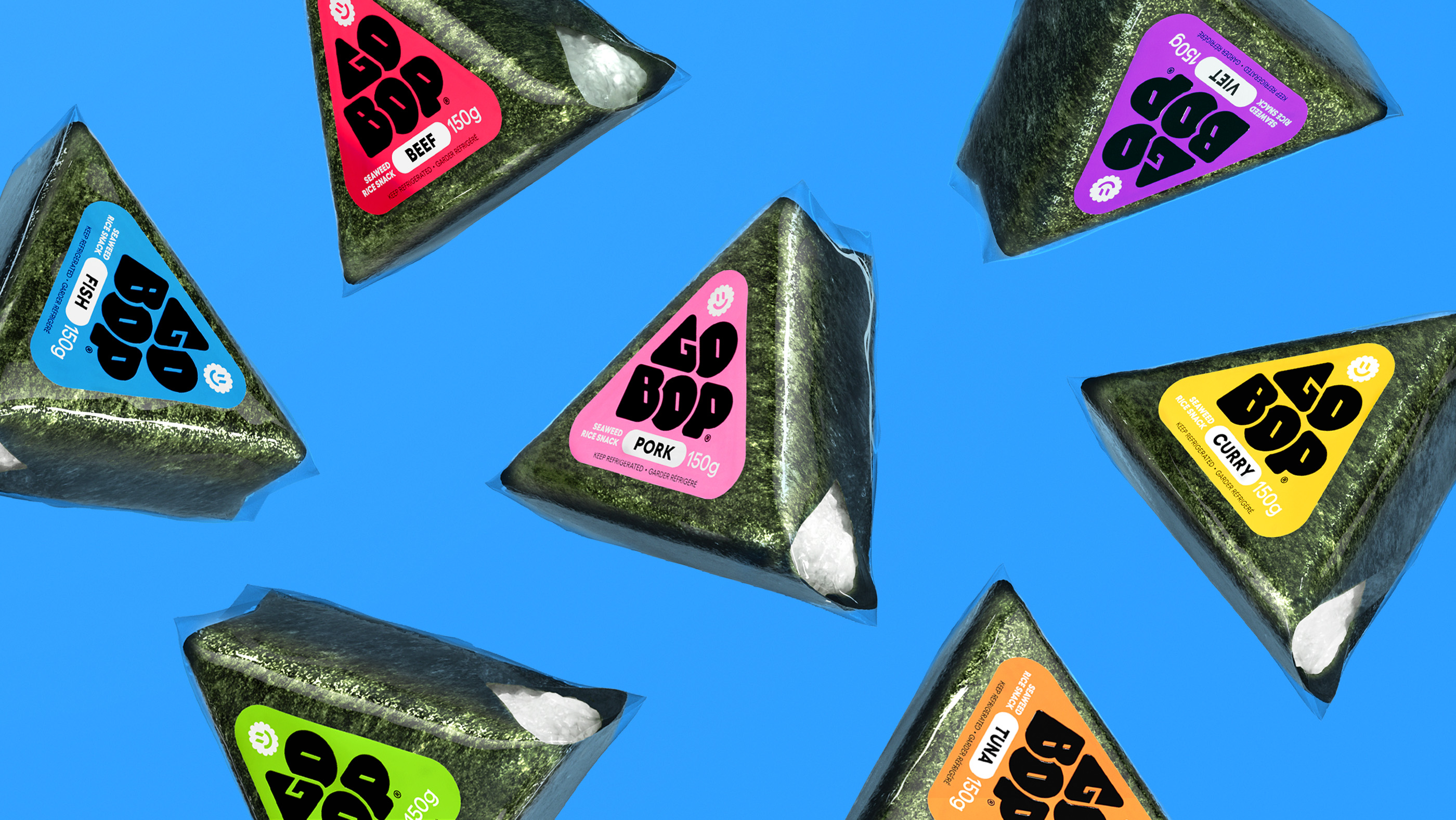 Go-Bop is introducing kimbap, Korea’s beloved seaweed rice snack, to the Canadian market. Conveniently packaged for freshness and portability, it offers a modern take on a traditional favorite, creating a new grab-and-go option for today’s consumers. While the product was already a proven hit, Go-Bop needed a confident, distinctive identity to establish its presence.